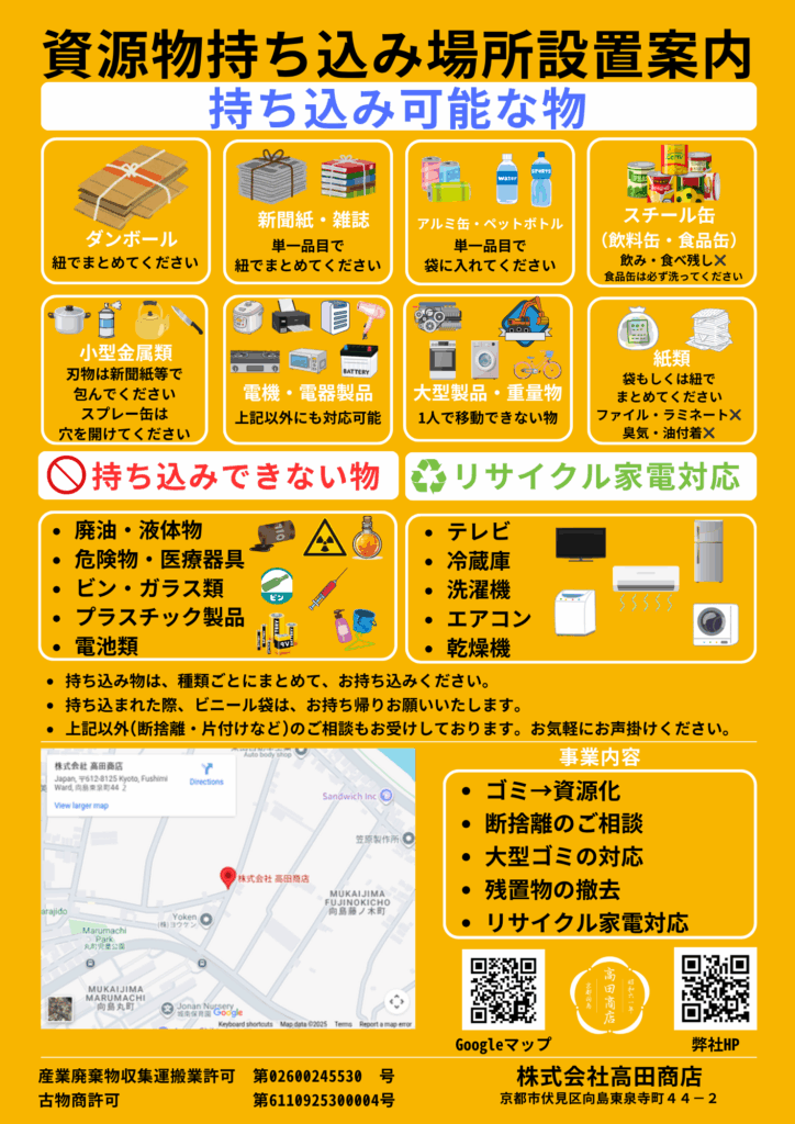 弊社では、資源物持ち込み場所を設置しております。